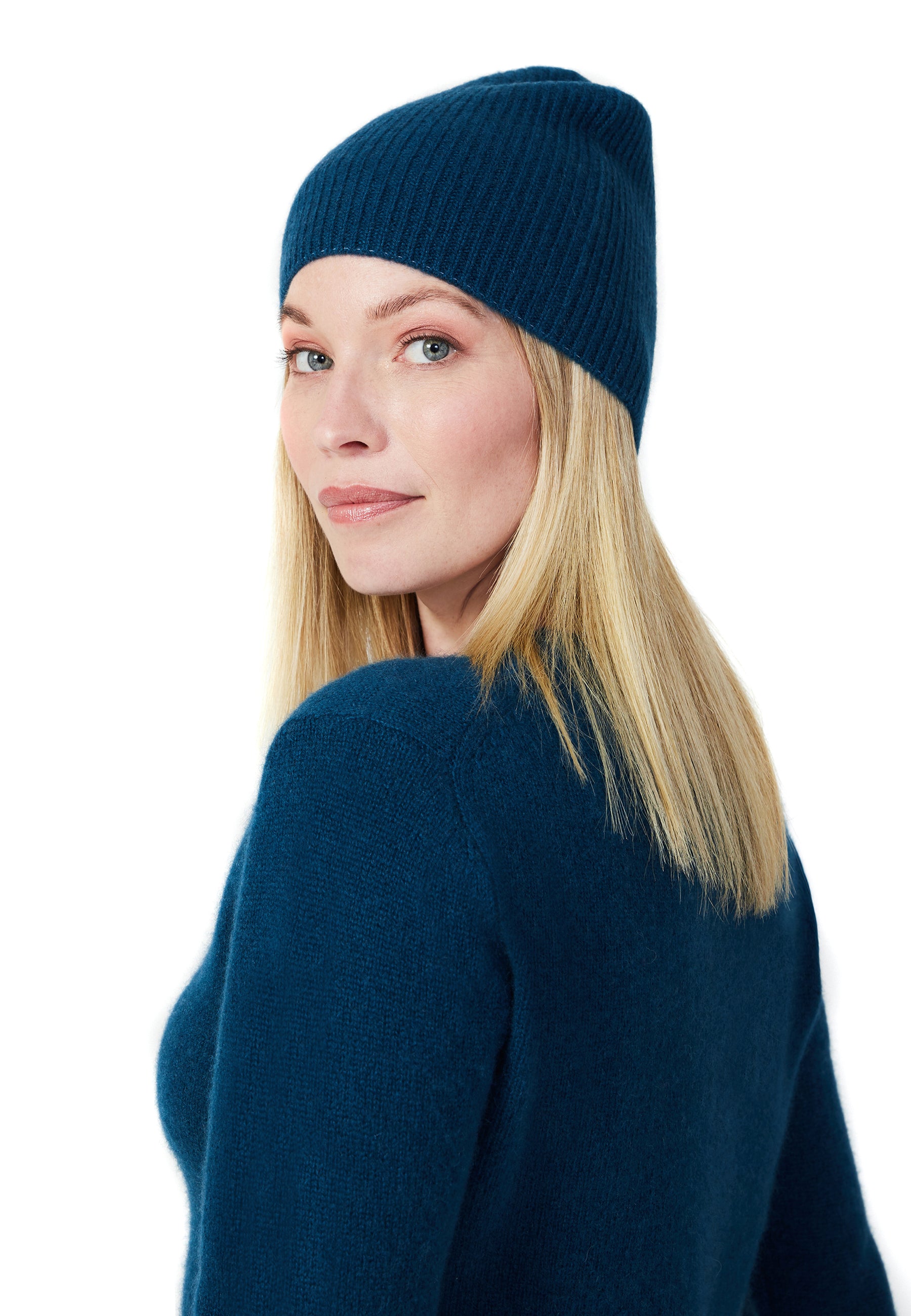 Style Republic Women’s 100% Pure Cashmere Fully Ribbed Beanie - color variant: Marine Blue