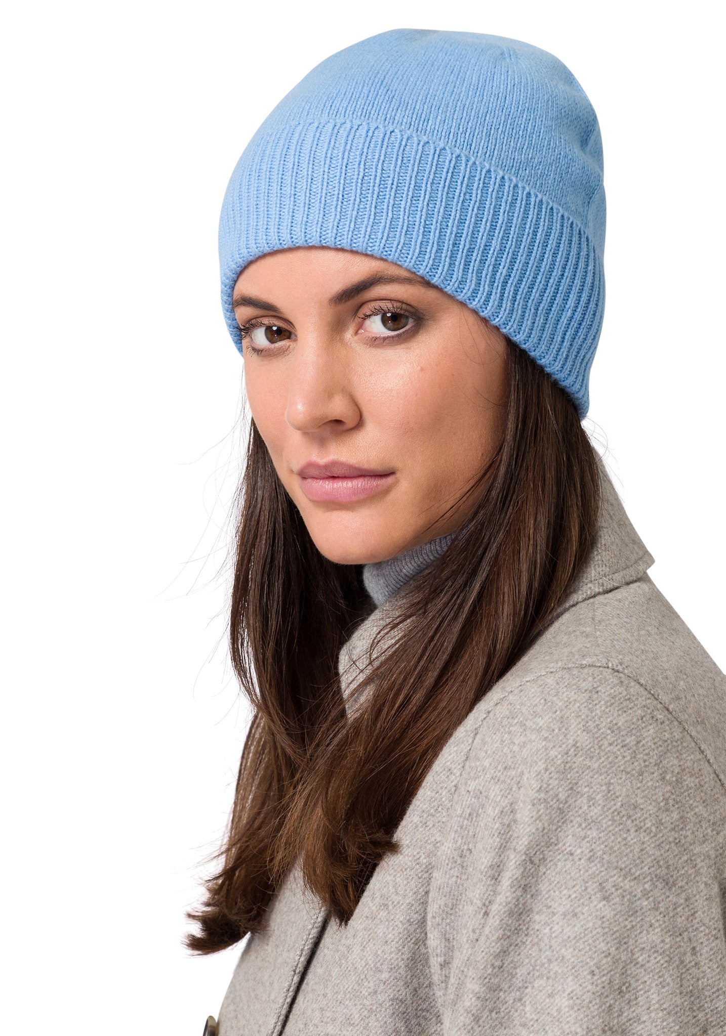 Style Republic Women’s 100% Pure Cashmere Fully Ribbed Beanie - color variant: Icy Blue