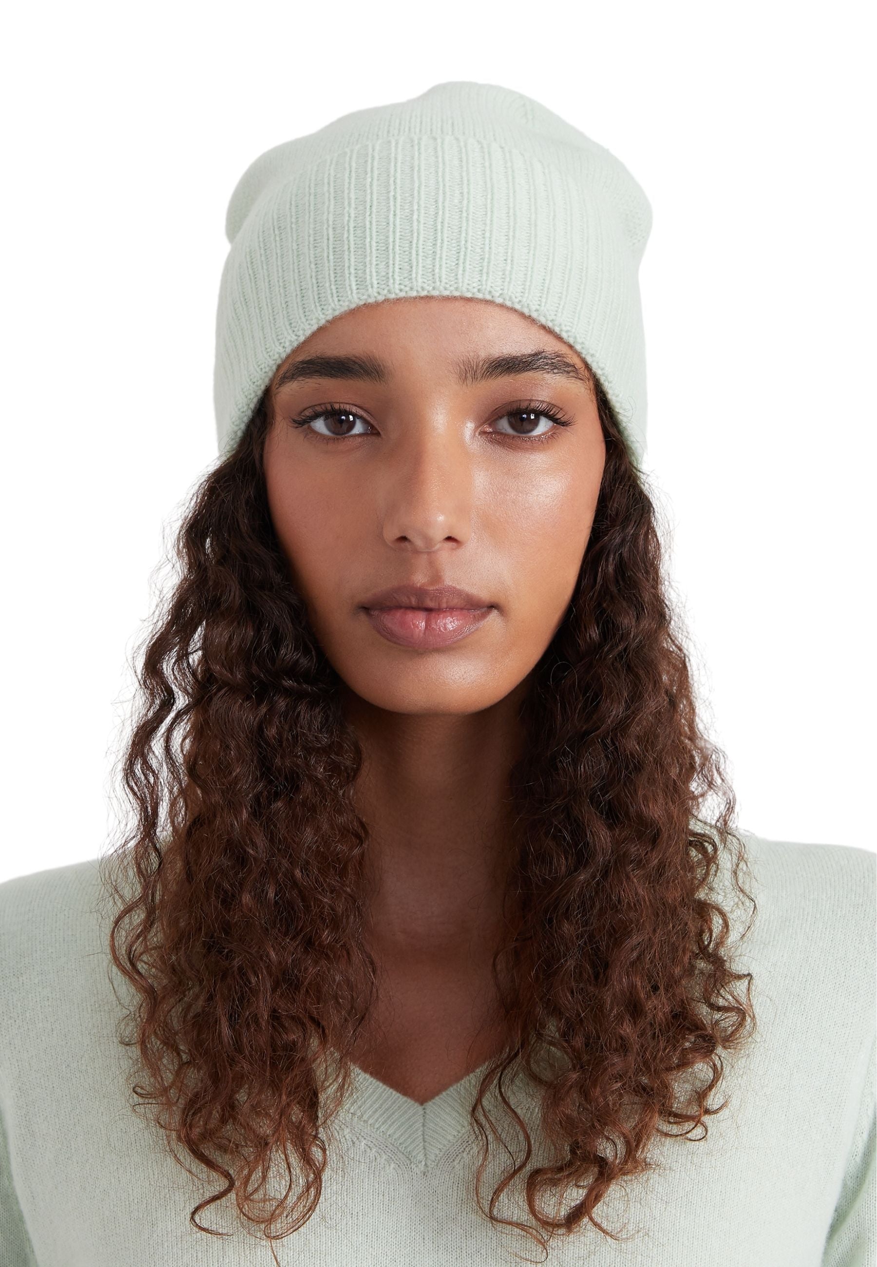 Style Republic Women’s 100% Pure Cashmere Fully Ribbed Beanie - color variant: Mint Green