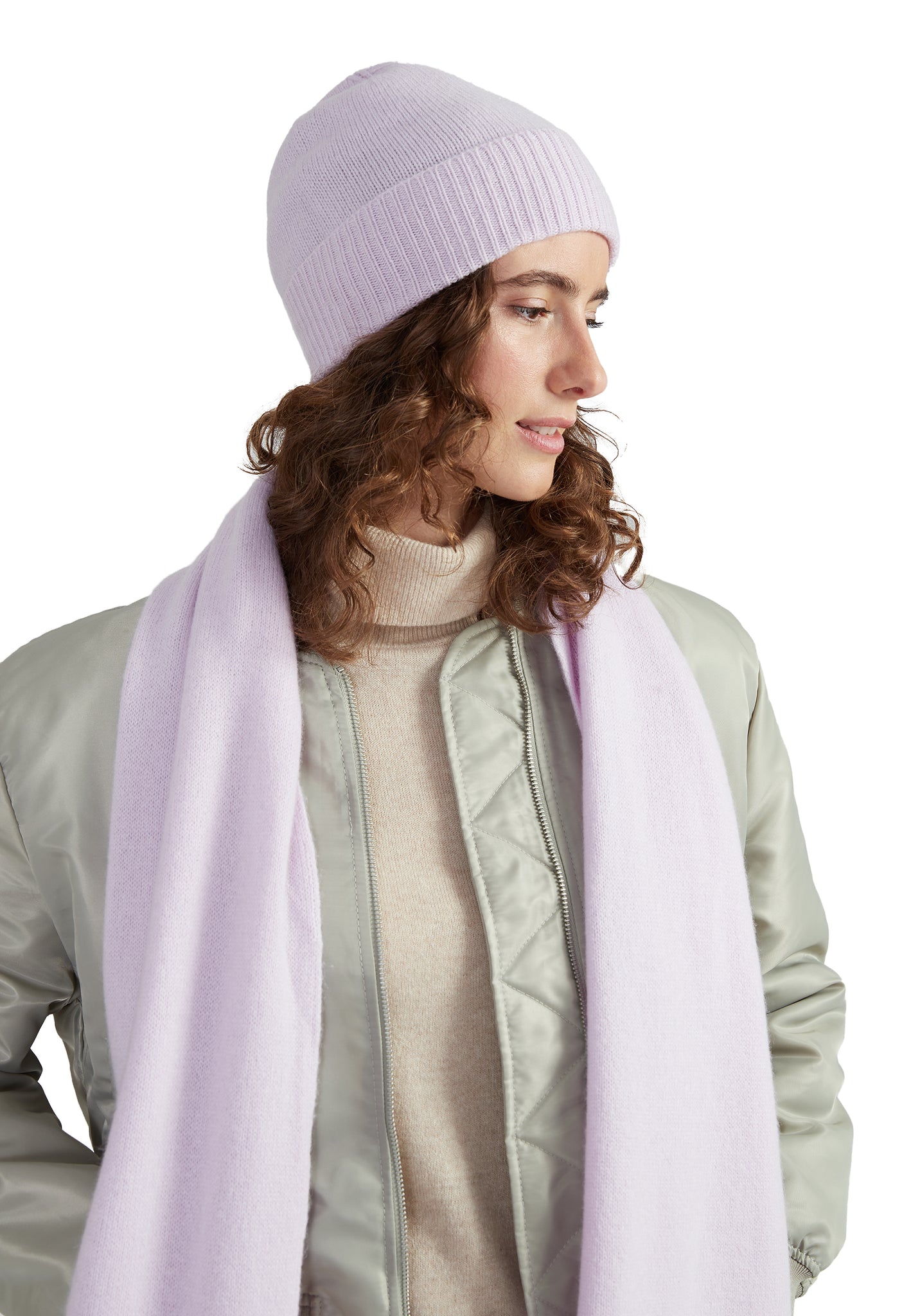 Style Republic 100% Pure Cashmere Women’s Ribbed Cuff Beanie - color variant: Lavender