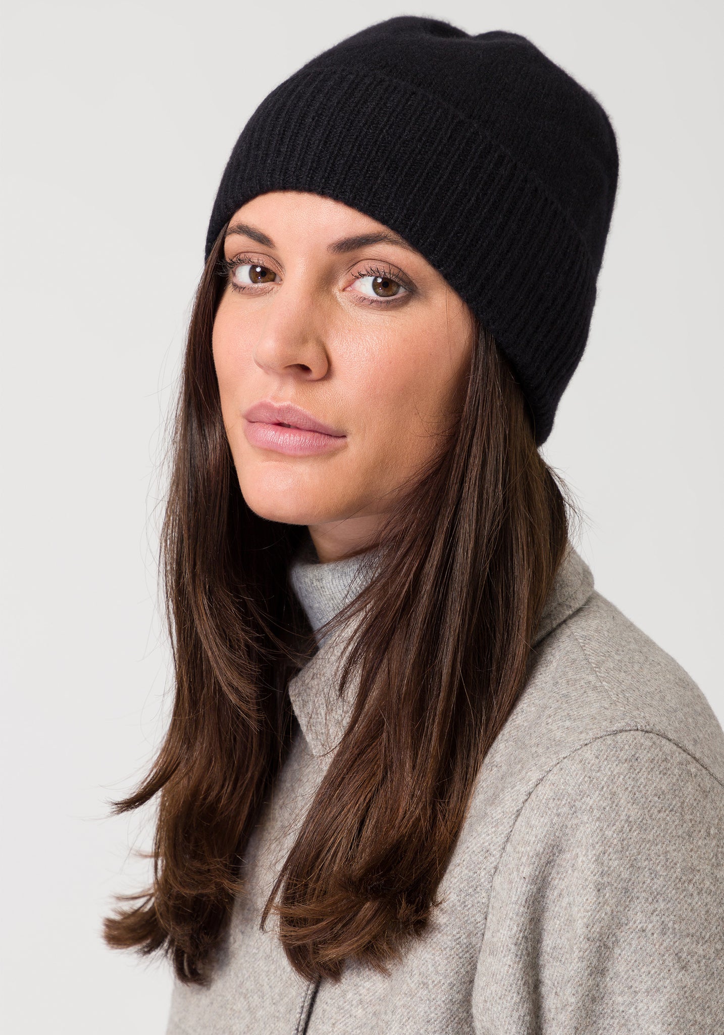 Style Republic Women’s 100% Pure Cashmere Fully Ribbed Beanie - color variant: Grey